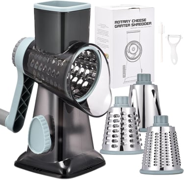 Upgrade your kitchen with this incredible Rotary Cheese Grater Shredder, featuring three interchangeable stainless steel drums, each uniquely designed for various culinary tasks such as slicing, shredding, and grating. Effortlessly prepare cheese for your favorite dishes, beautifully shred vegetables for salads, and grate fresh nuts to enhance your desserts with flavors and textures. The ergonomic handle provides a comfortable grip for extended use, while the stable suction base ensures safety and stability during operation. Easy to assemble, disassemble, and clean—this tool is perfect for busy home cooks and passionate food enthusiasts alike, making it an essential addition to your kitchen arsenal.